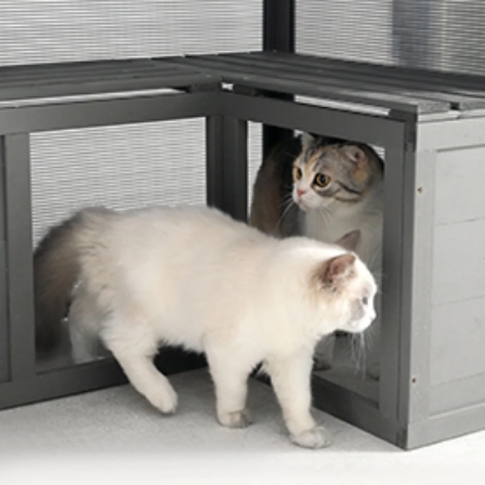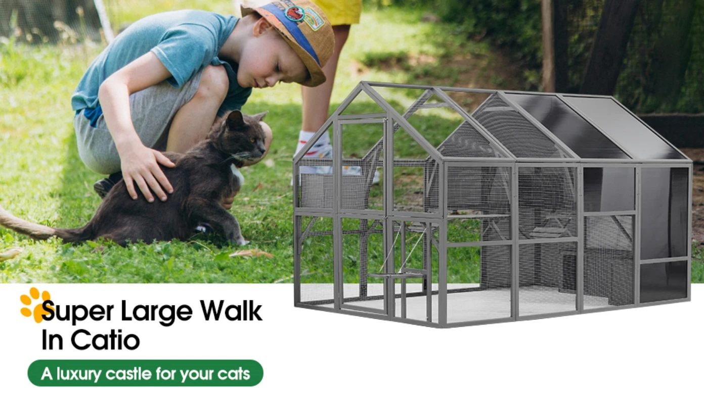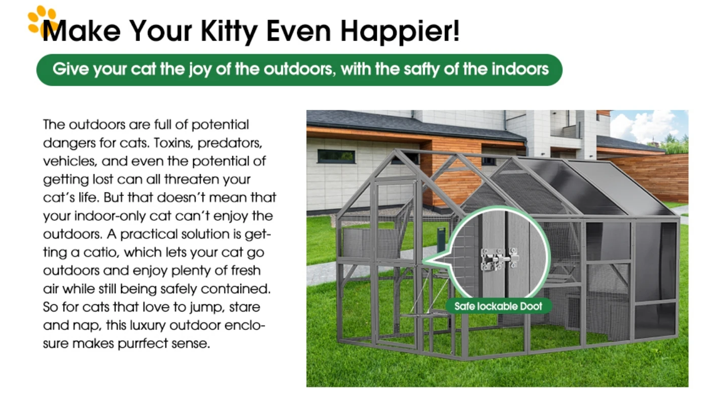 - 【Extra Large Walk-in Cat House】The large front door at 58" tall allow you to go inside to interact with your cats, and make feeding and cleaning easy. Our Cat house design with a small access doors to attach our house or cat tunnel, make your cats move freely from indoor to outdoor.