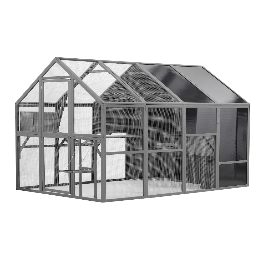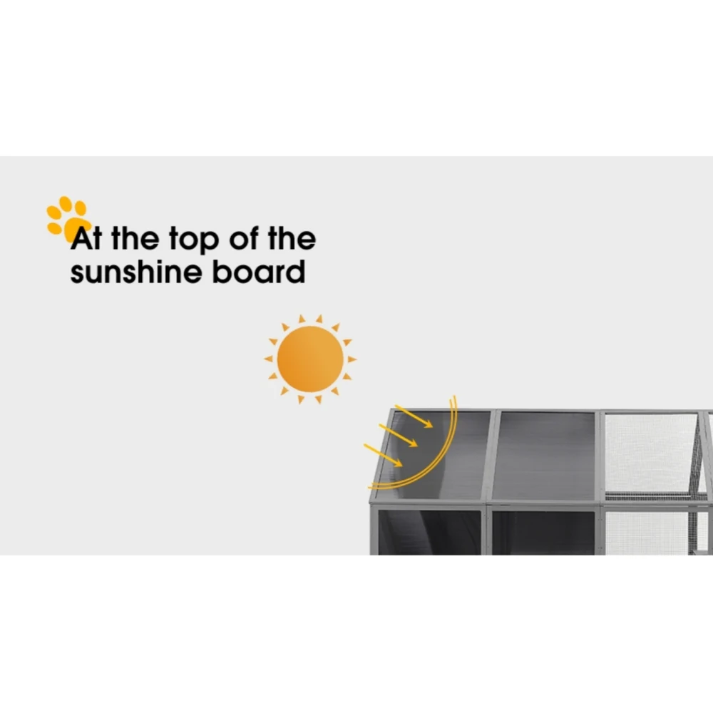 - 【Sturdy & Safety 】Wooden cat playpen made of solid fir wood frame, animal-friendly paint, durable and sturdy metal wire keeps your cat secure inside. The wire mesh provides transparent full sight around the cat for its curiosity and observer nature. And Unique upgraded EXTRA polycarbonate hollow sheet keep the wind & rainy away.